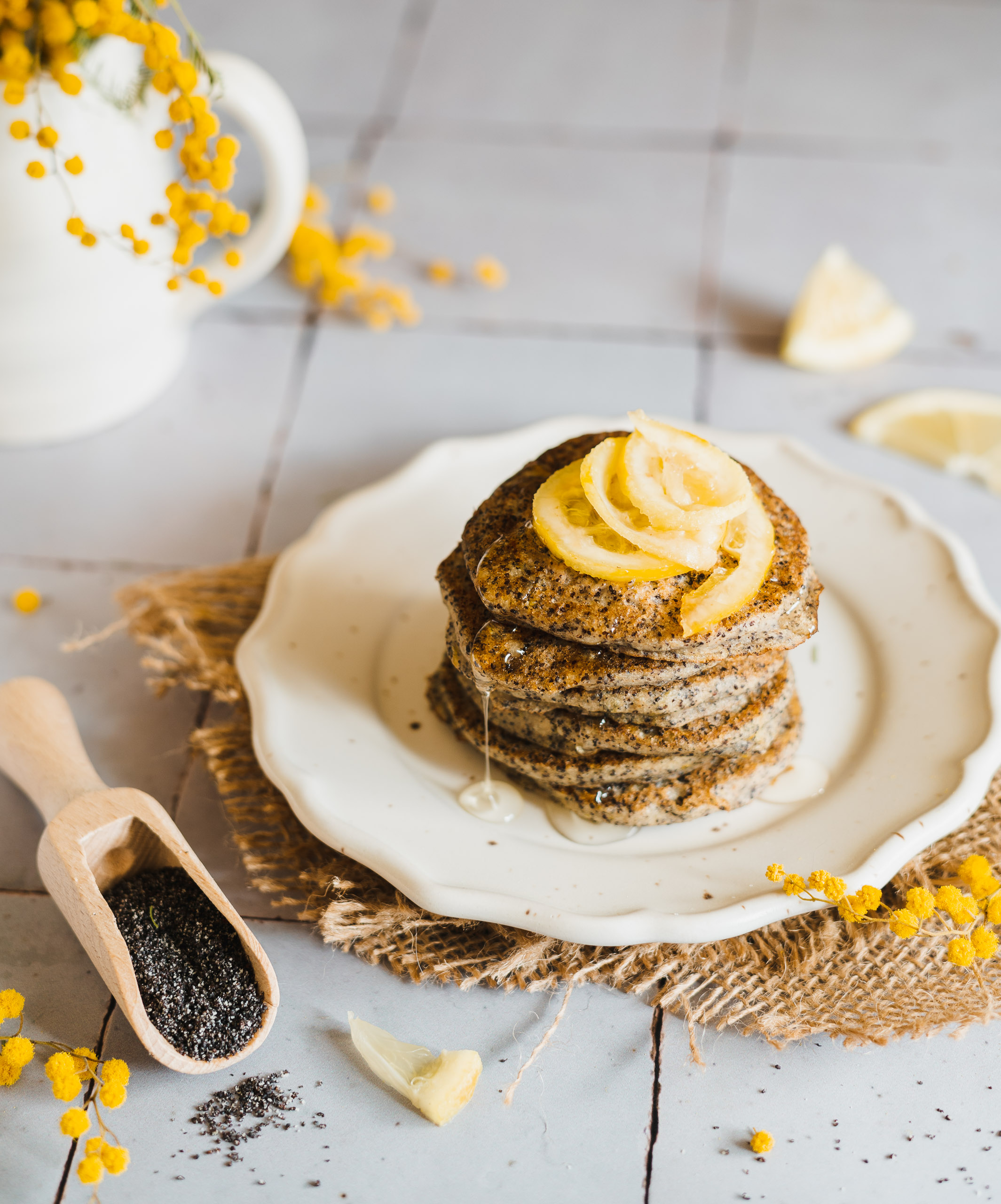 Pyszne, puszyste makowo-cytrynowe placuszki na mące gryczanej polecają się na śniadanie. A dla wielbicieli cytrusów, można je dodatkowo podać z karmelizowanymi plastrami cytryny.