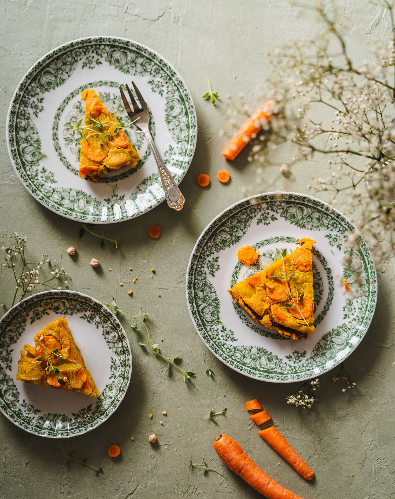 Moja tortilla marchewkowa na mące z ciecierzycy to jest właśnie wariacja na temat Farinaty. Dzięki dodatkowi proszku do pieczenia wychodzi delikatna, lekko podrastając podczas pieczenia. Nie jest konieczne odstawianie surowej masy do odpoczęcia. A marchewka i cebula w cieście, kojarzą się znowu z tortillą. Stąd ta tytułowa nazwa.