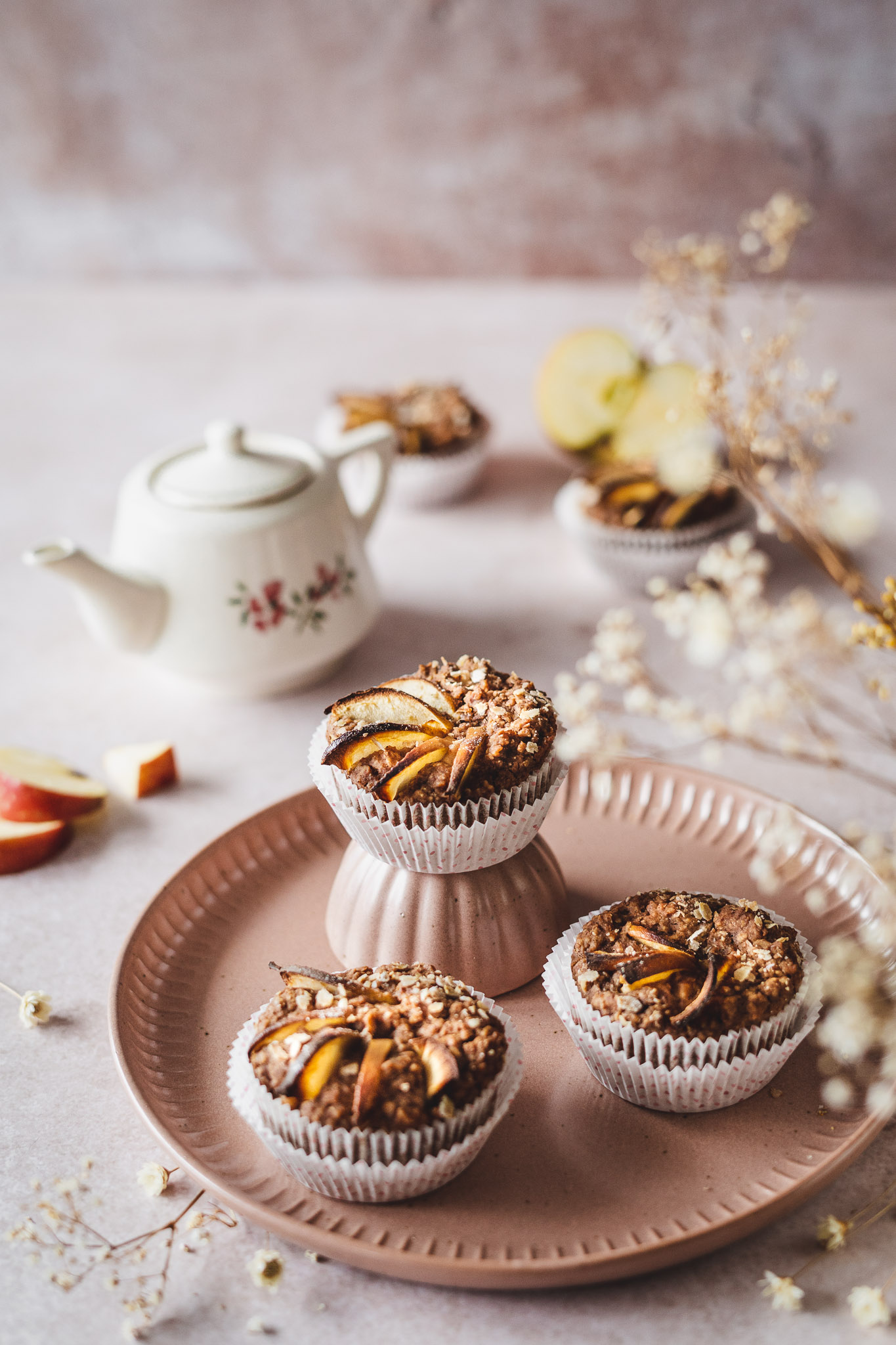 Bez glutenu, bo na mące kasztanowej i płatkach gryczanych. A to wyjątkowo dobrze pasujące do siebie produkty. Oby dwa o lekko orzechowym smaku. Podbijamy ten smak cynamonem i jabłkiem, co czyni te muffinki prawdziwie jesienno-zimową słodkością. Wiem, że płatki gryczane nie cieszą się popularnością. Ja jednak szczerze polecam je spróbować. To naprawdę smaczna alternatywa dla zbożowych płatków. Bardzo dobrze sprawdzają się także w wypiekach, gdyż są drobne, a dzięki dobrym właściwościom wiążącym, świetnie sprawdzają się w wypiekach wegańskich, czego te muffinki są dobrym przykładem.